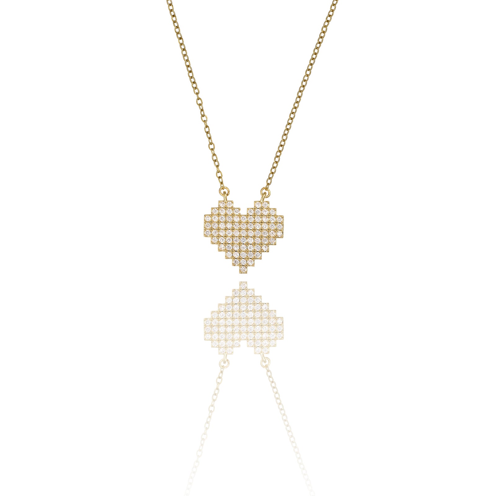 Collana cuore pixel con cristalli in acciaio dorato