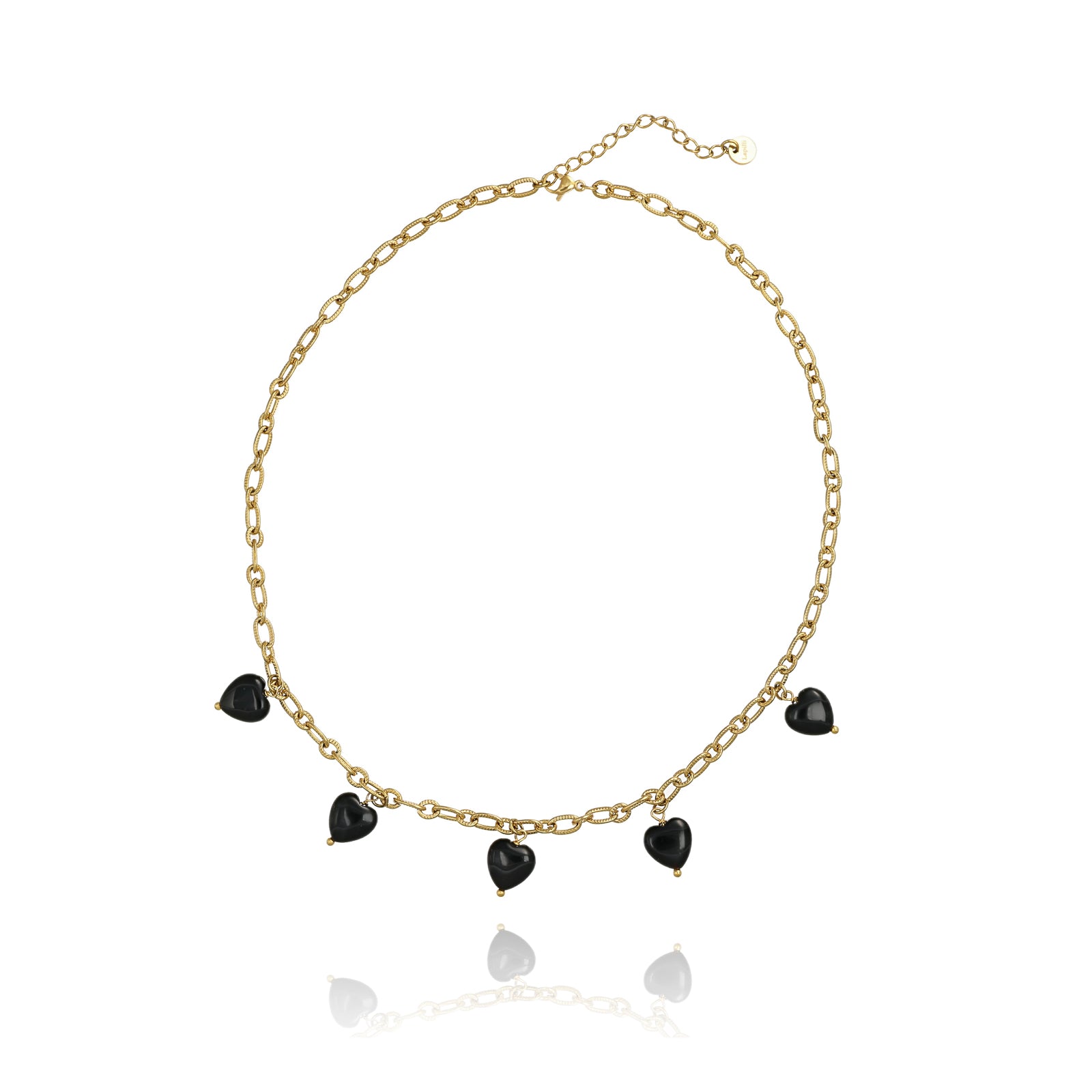 Collana con cuori in onice nero in acciaio placcato oro 18kt.