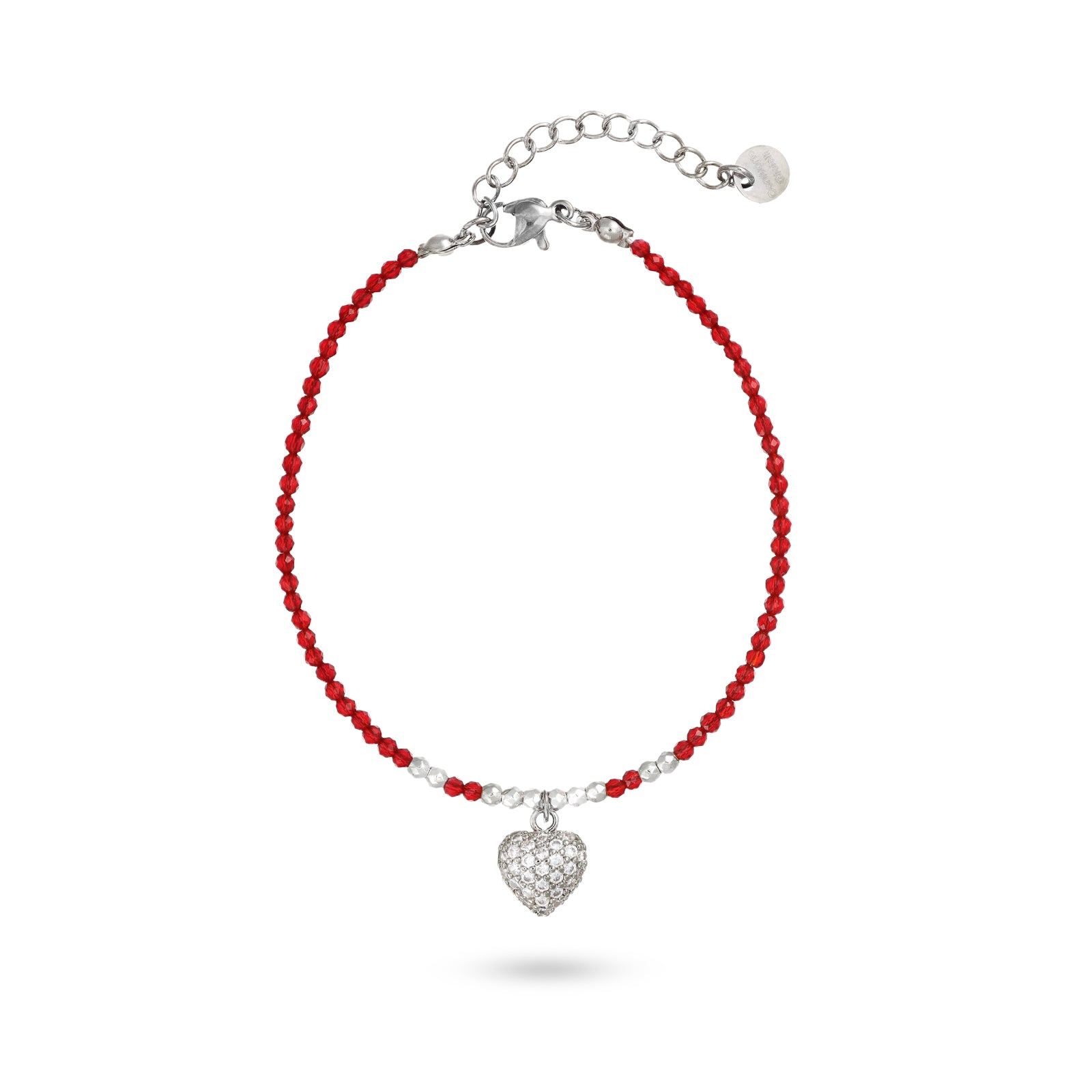 Bracciale cristalli rosso ed ematite gold e cuoricino zirconato in acciaio.