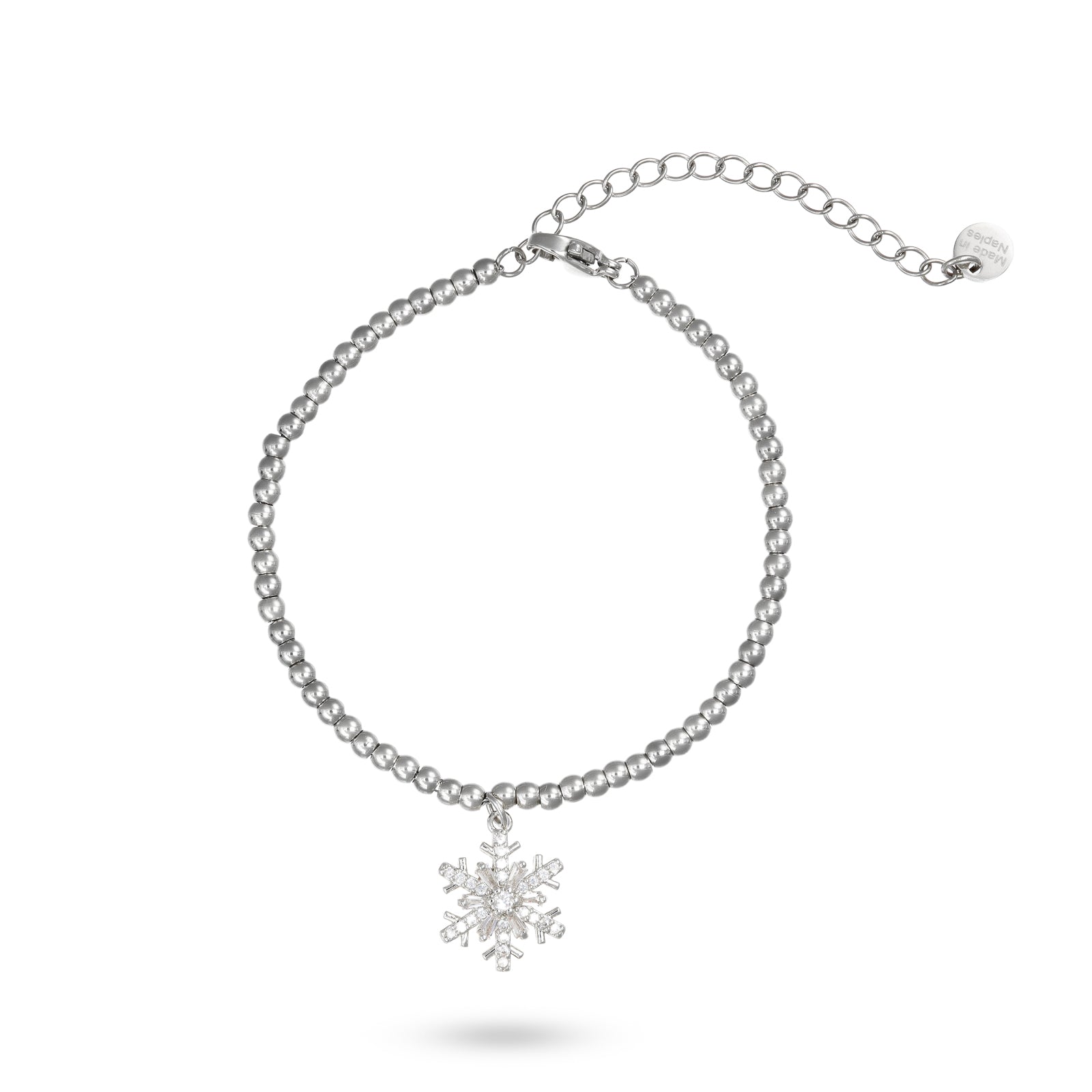 Bracciale con fiocco di neve con cristalli su bracciale a pallini in acciaio.