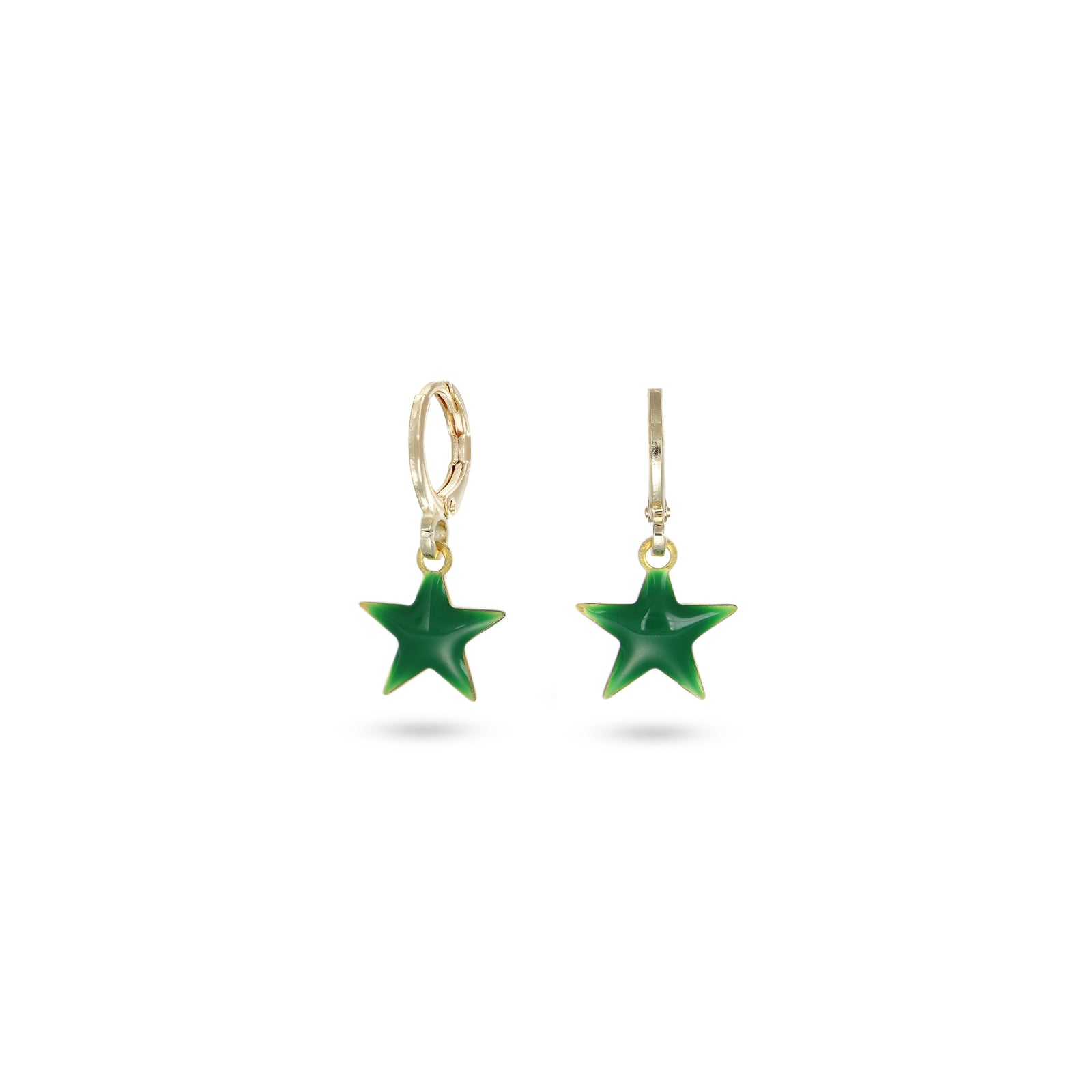 Cerchi stelline smaltate verdi in acciaio dorato.