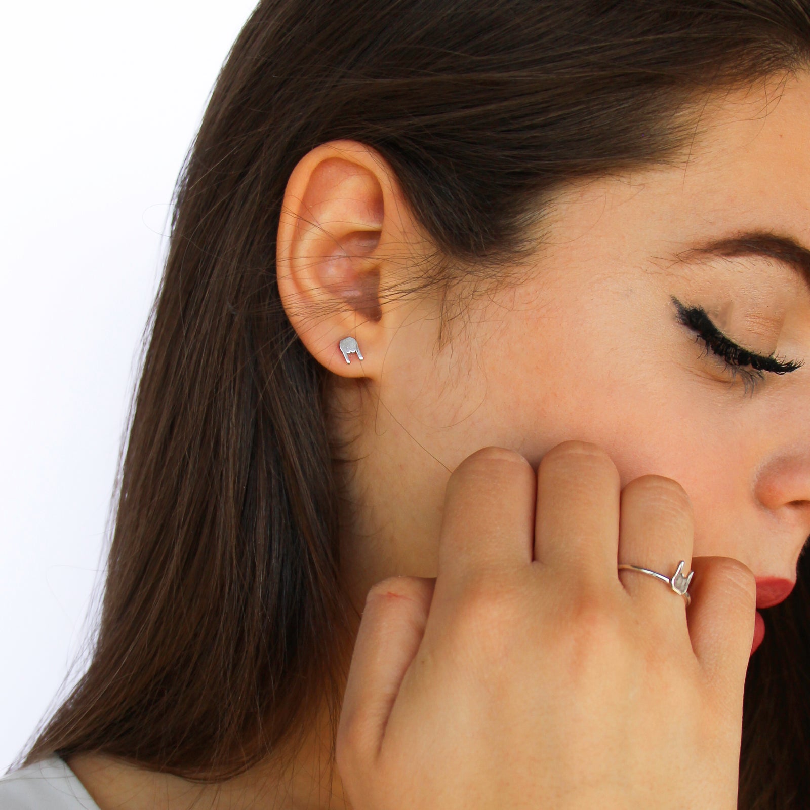 Orecchini perno con gesto delle corna in argento 925‰ rodiato